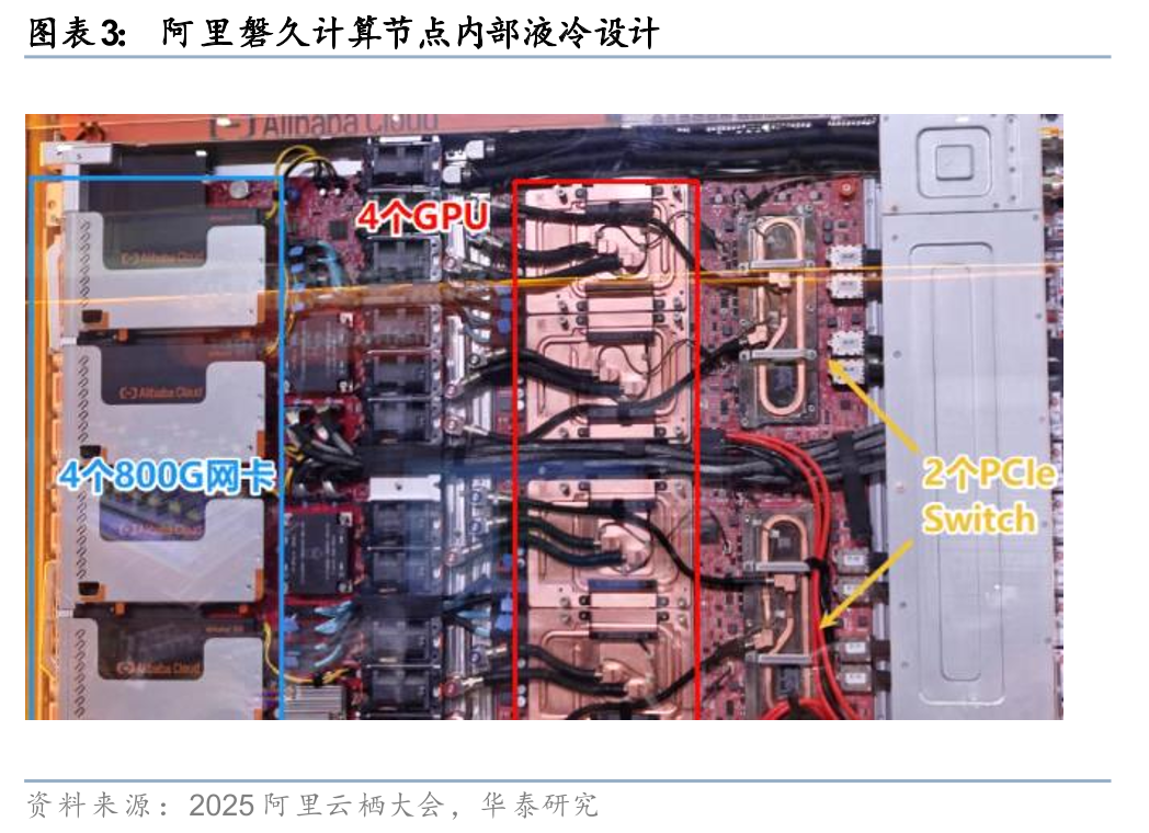 液冷:全面渗透进行时。我们观察到,当前液冷的应用不再局限于GPU,CPU也开始普遍采用液冷散热,后续在交换机等网络设备中液冷方案也有望成为标配,这标志着数据中心正全面进入“液冷时代”。